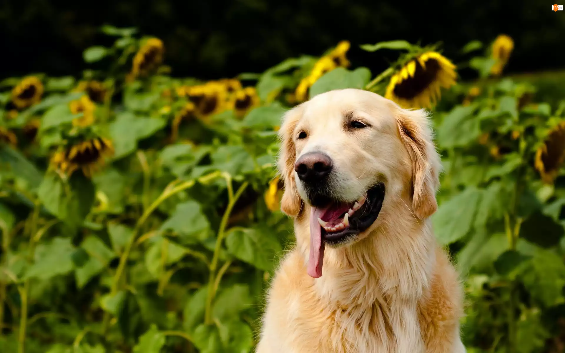 Słoneczniki, Golden Retriever, Jęzor