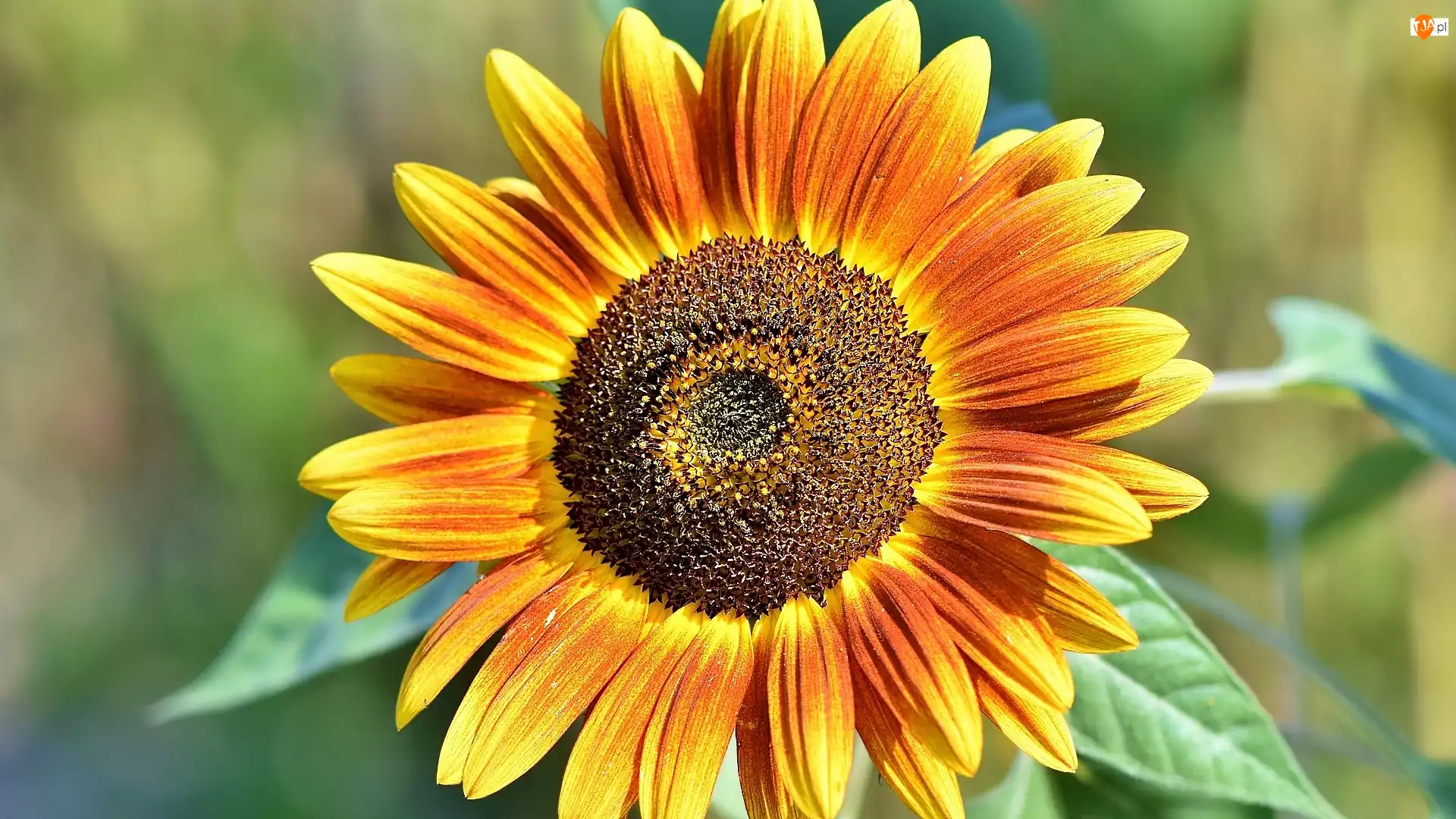 Zbliżenie, Kwiat, Słonecznik, Liście