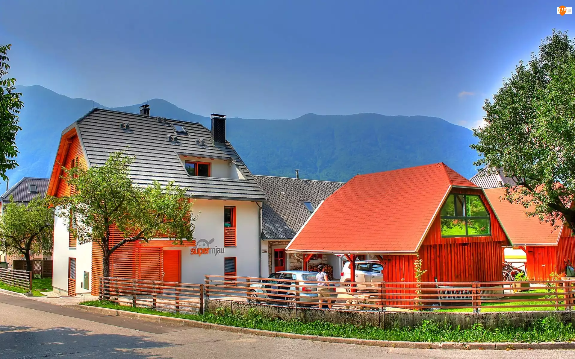 Słowenia, Domy, Góry, Droga, Lasy