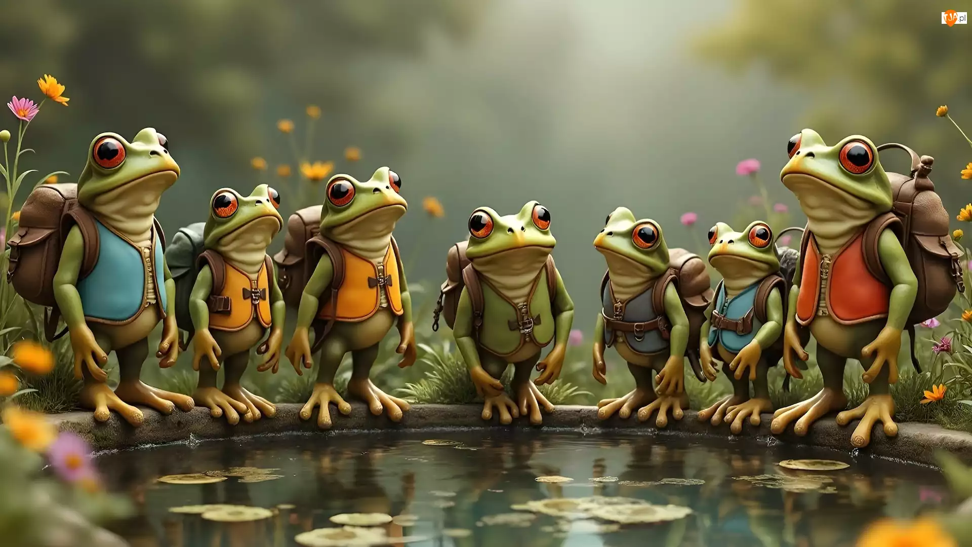 Śmieszne, Grafika, Żaby, Plecaki