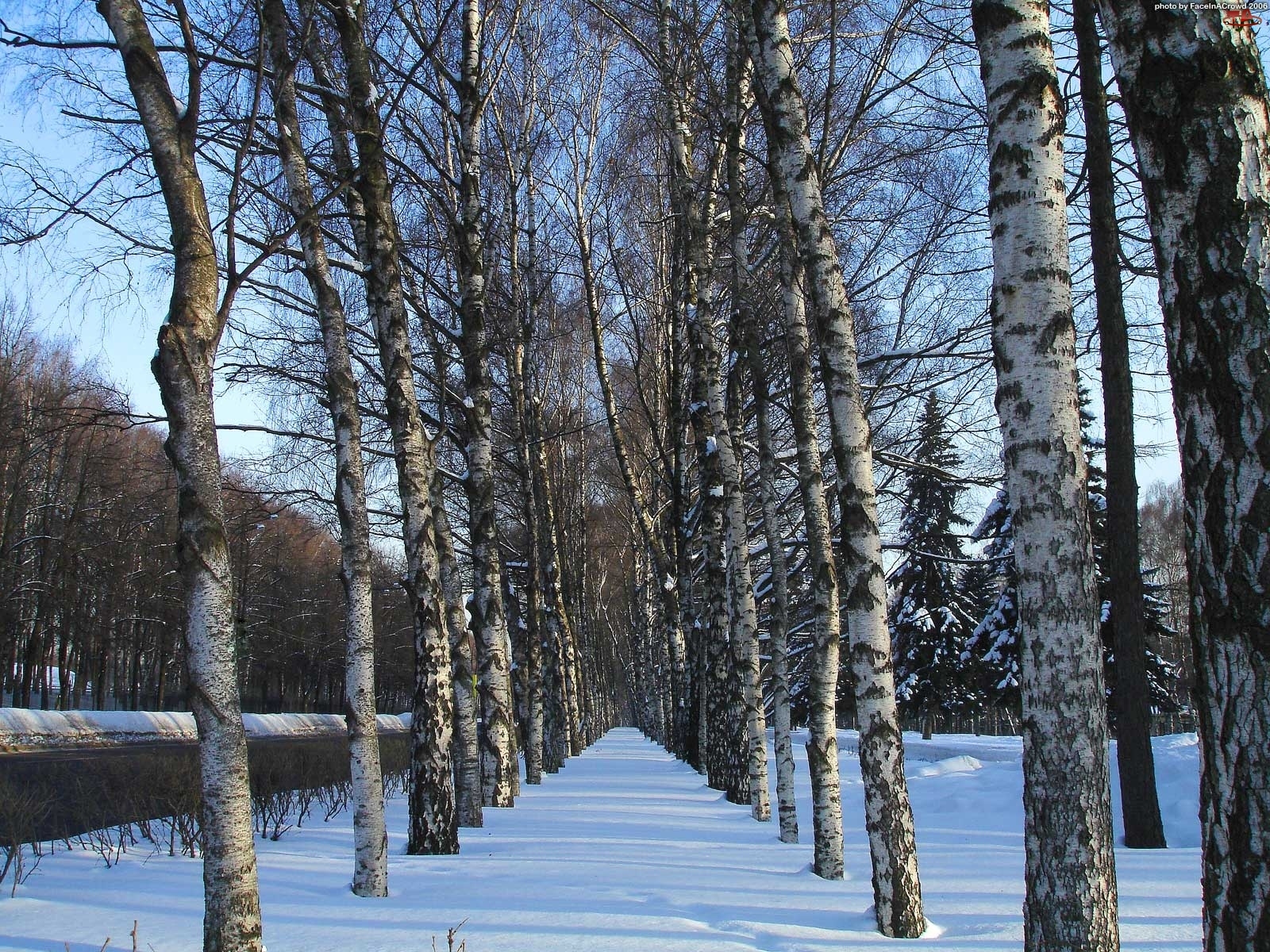 Śnieg, Alejka, Drzewa, Brzozy