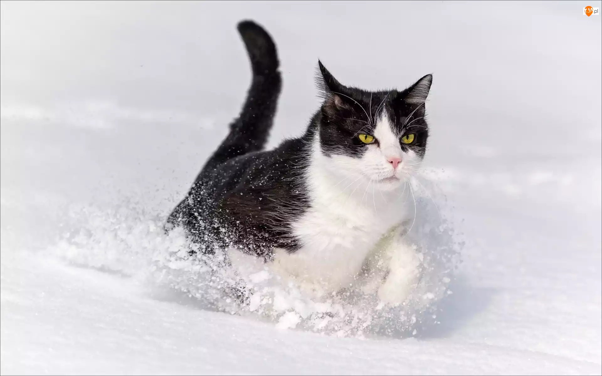 Śnieg, Czarno, Kot, Biały, Zima