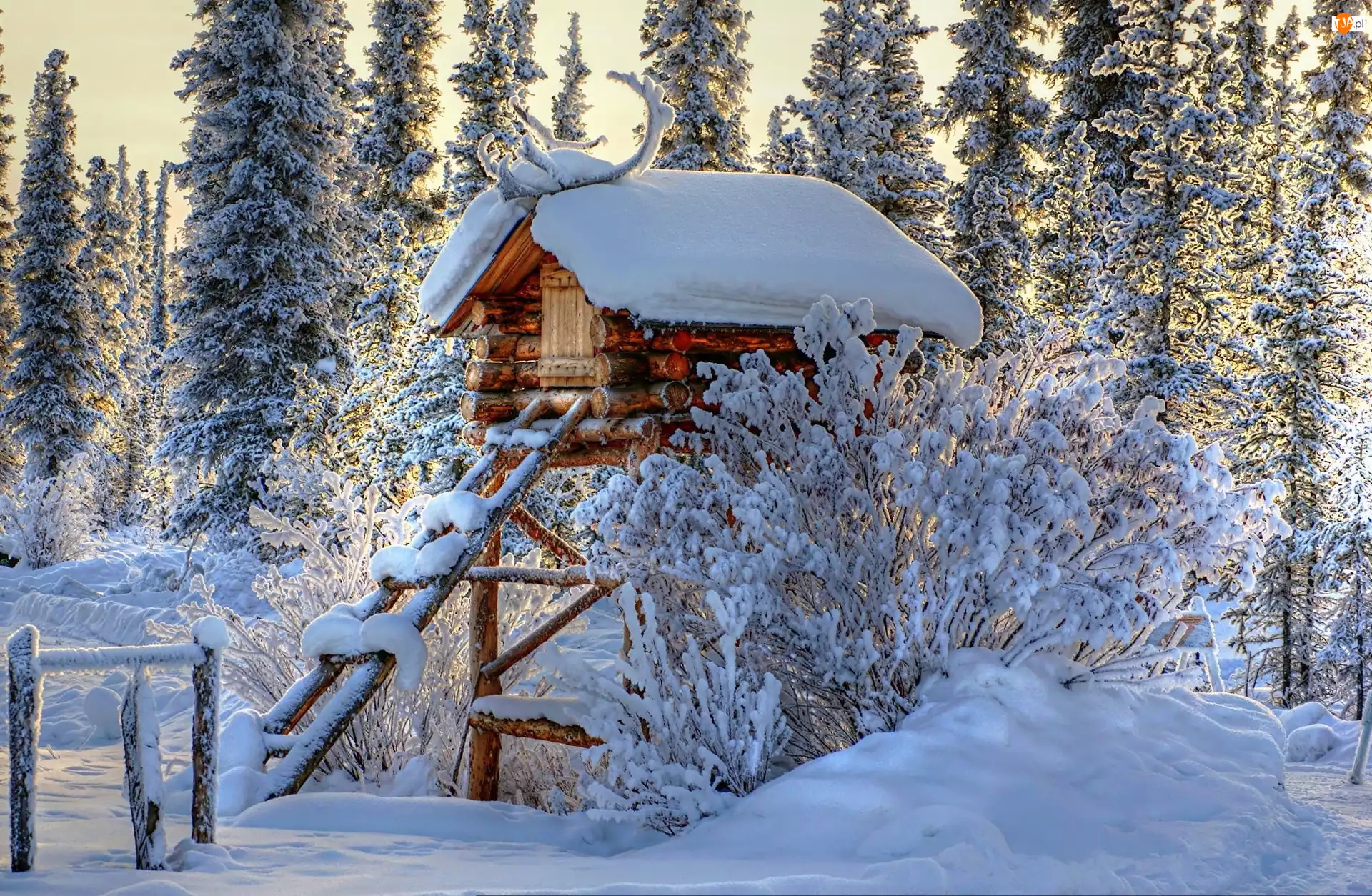 Śnieg, Drabina, Las, Szopa