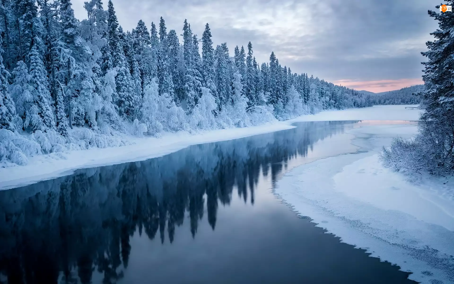 Śnieg, Drzewa, Rzeka, Zima, Ośnieżone