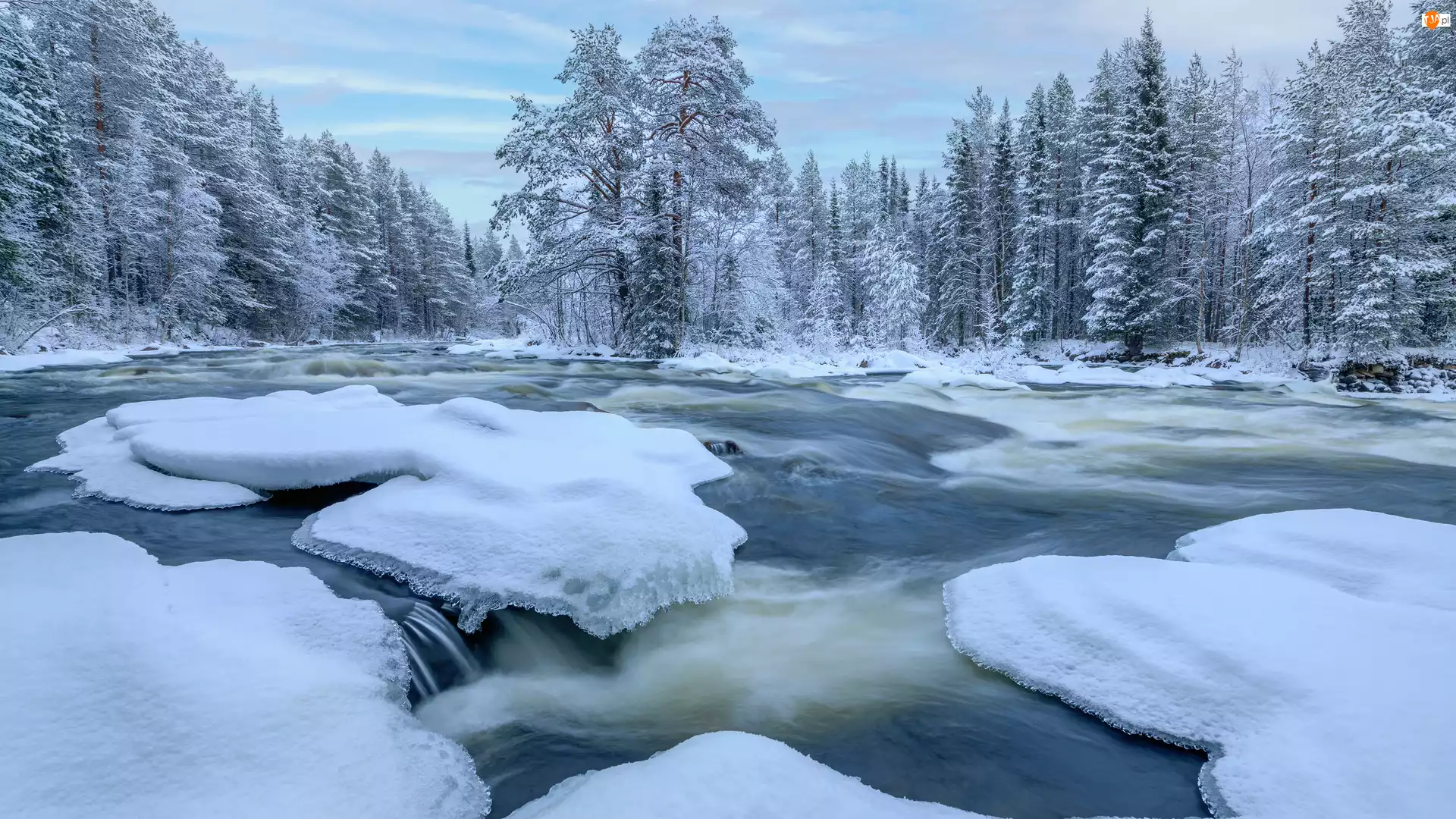 Śnieg, Drzewa, Zima, Rzeka, Ośnieżone