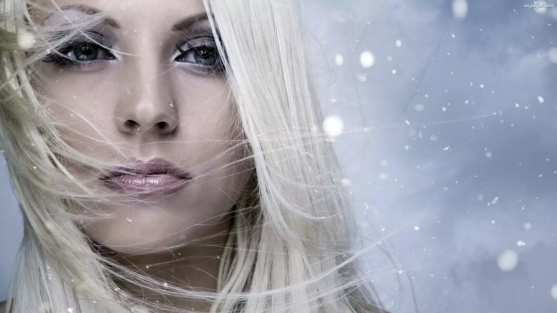 Makijaż, Śnieg, Twarz, Dziewczyna, Wiatr