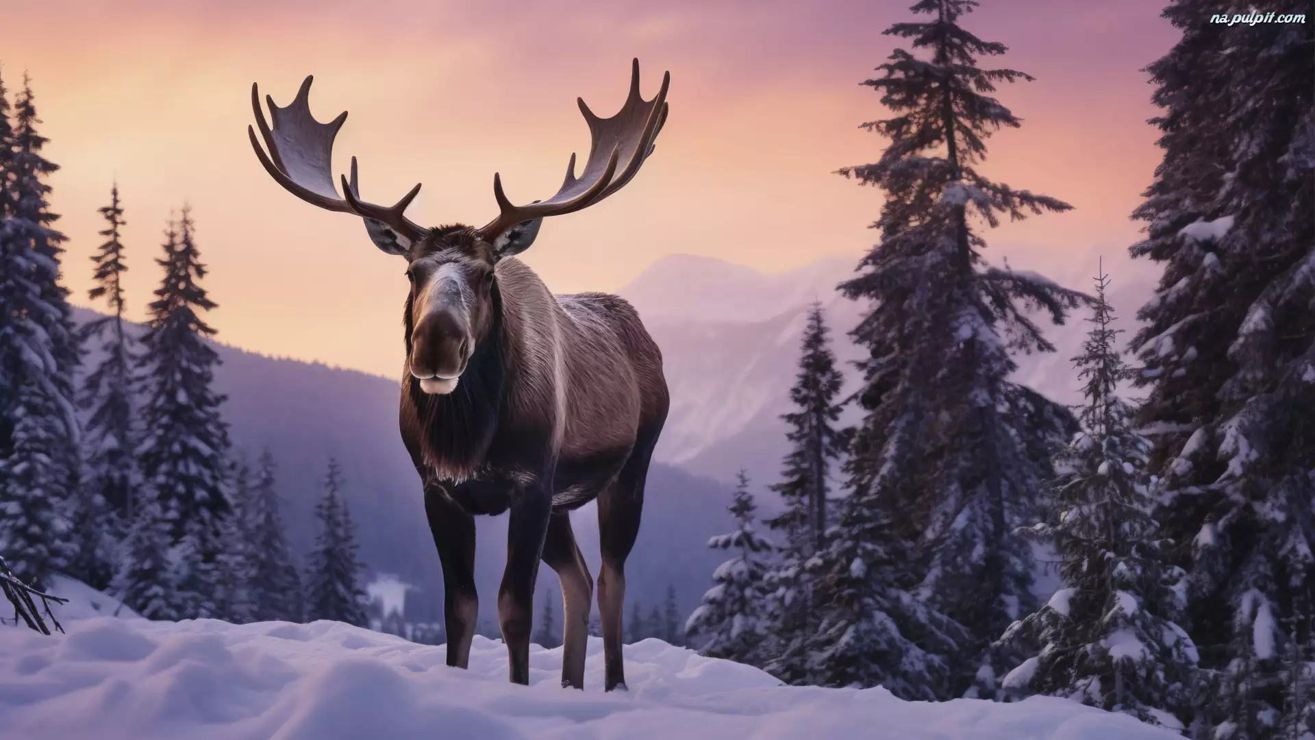 Śnieg, Góry, Zima, Łoś, Drzewa