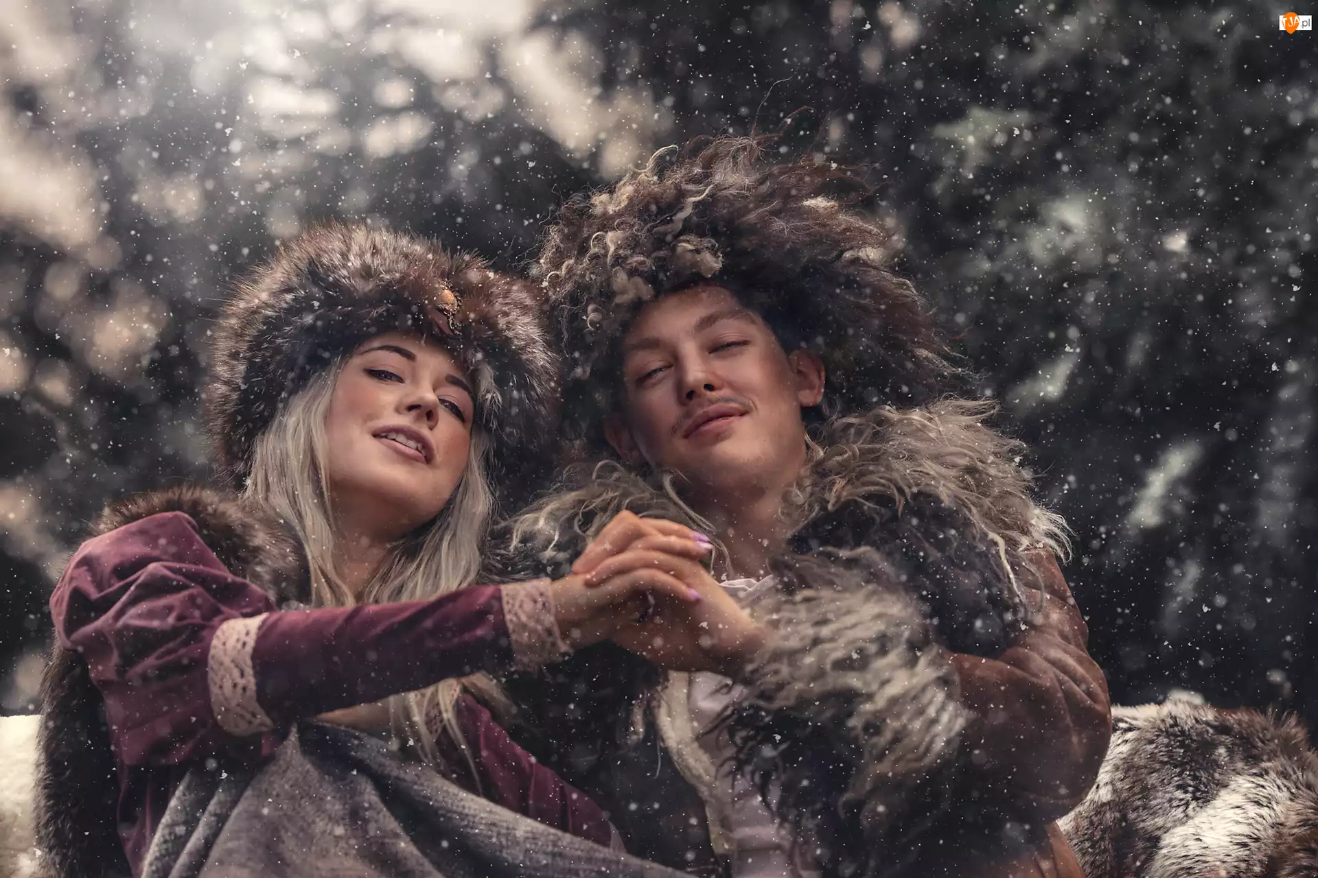 Śnieg, Kobieta, Mężczyzna, Czapki