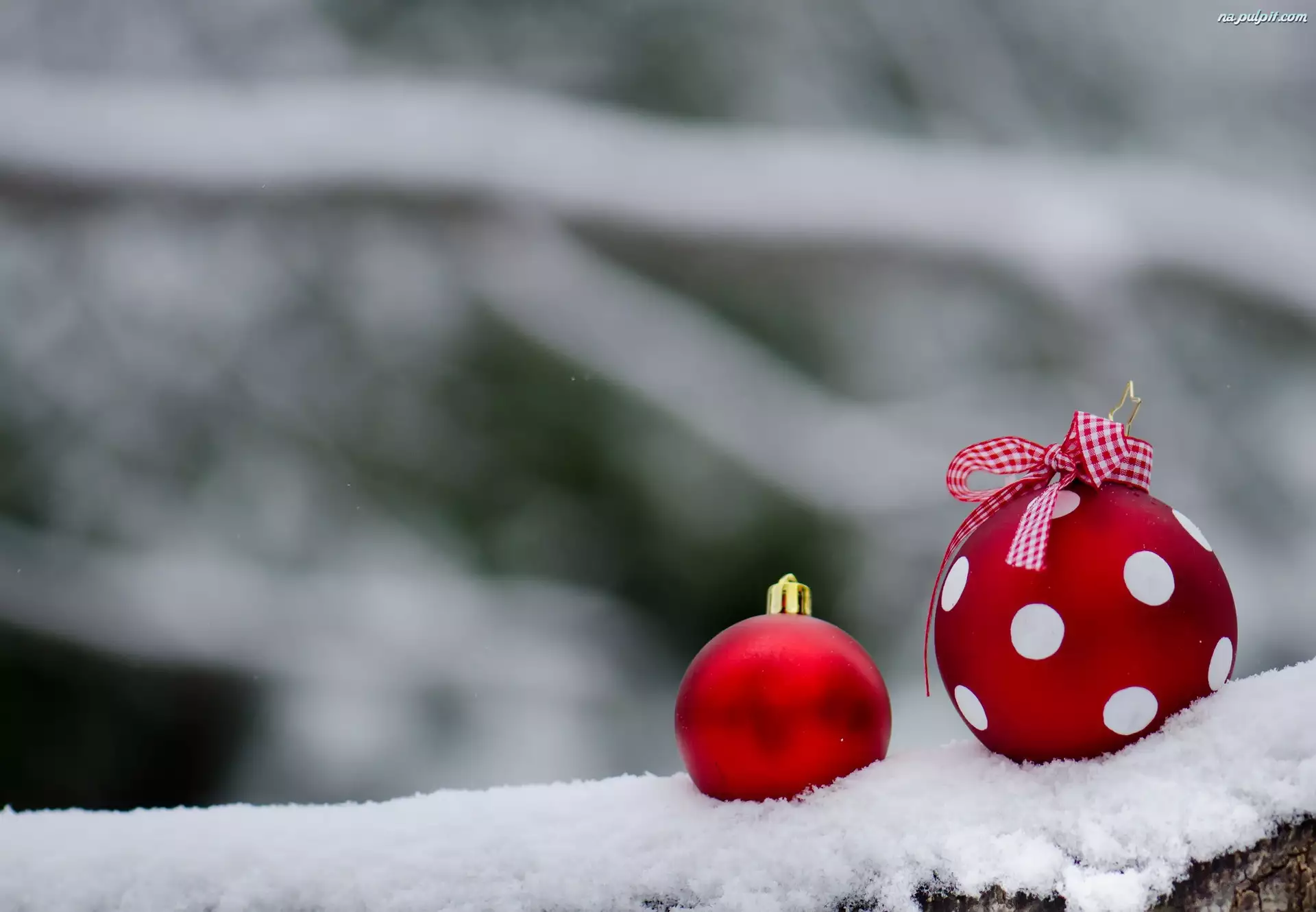 Choinkowe, Śnieg, Bombki, Kolorowe, Gałąz