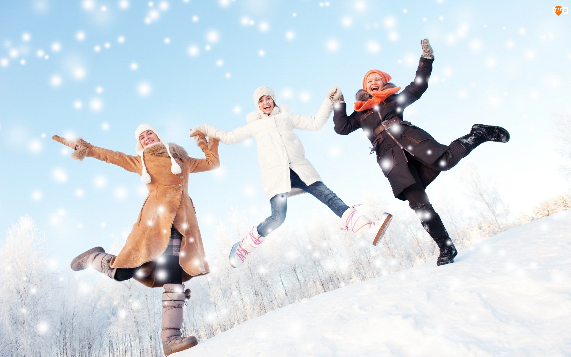 Śnieg, Trzy, Kobiety, Radosne, Zabawa