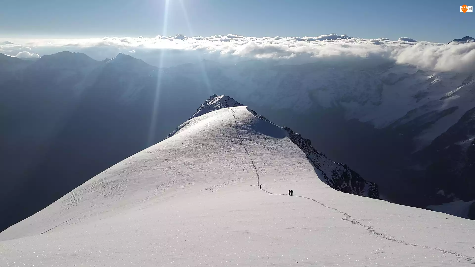 Góry, Chmury, Ślady, Alpinizm, Zima