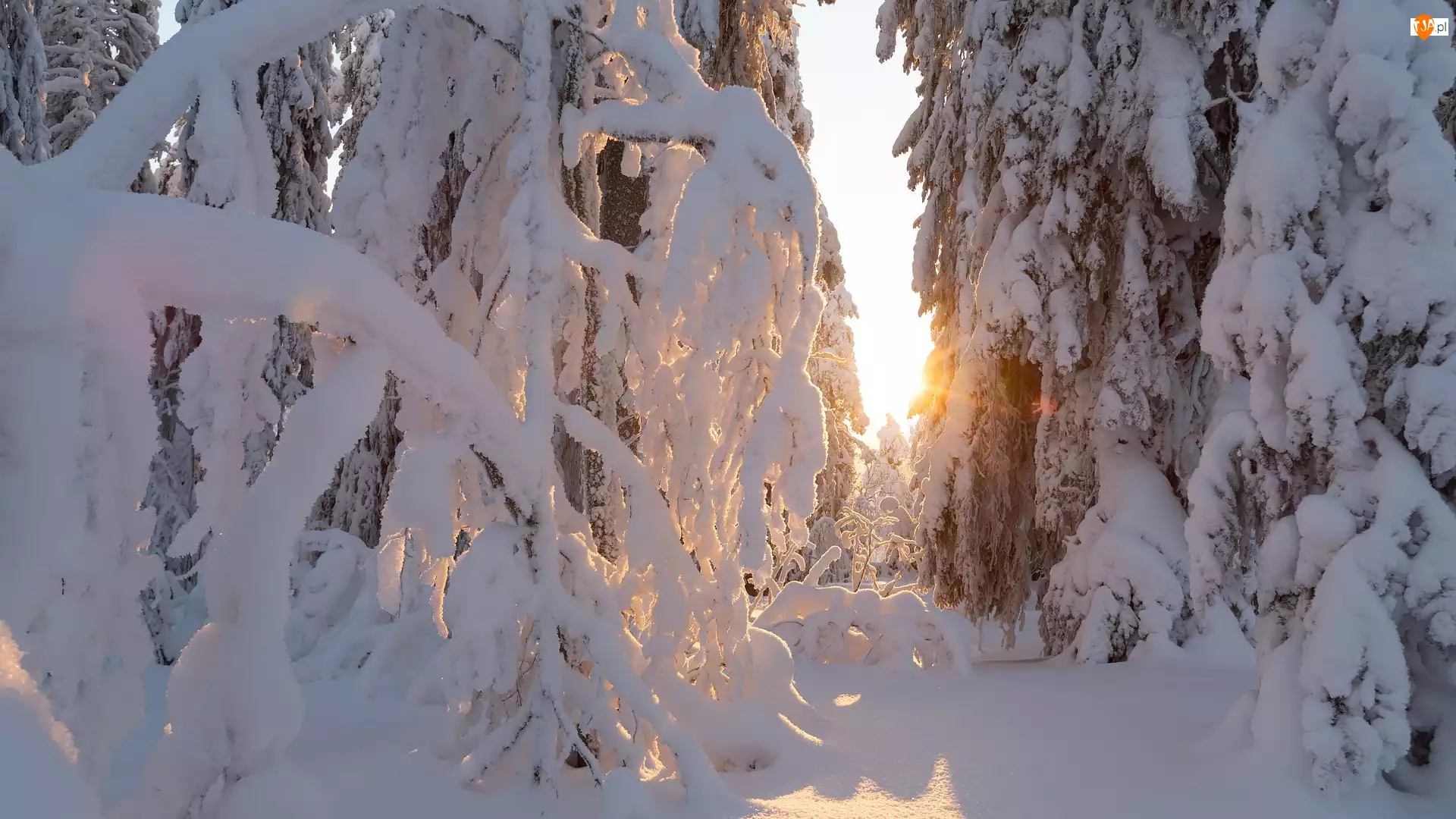 Drzewa, Słońce, Las, Zima, Śnieg