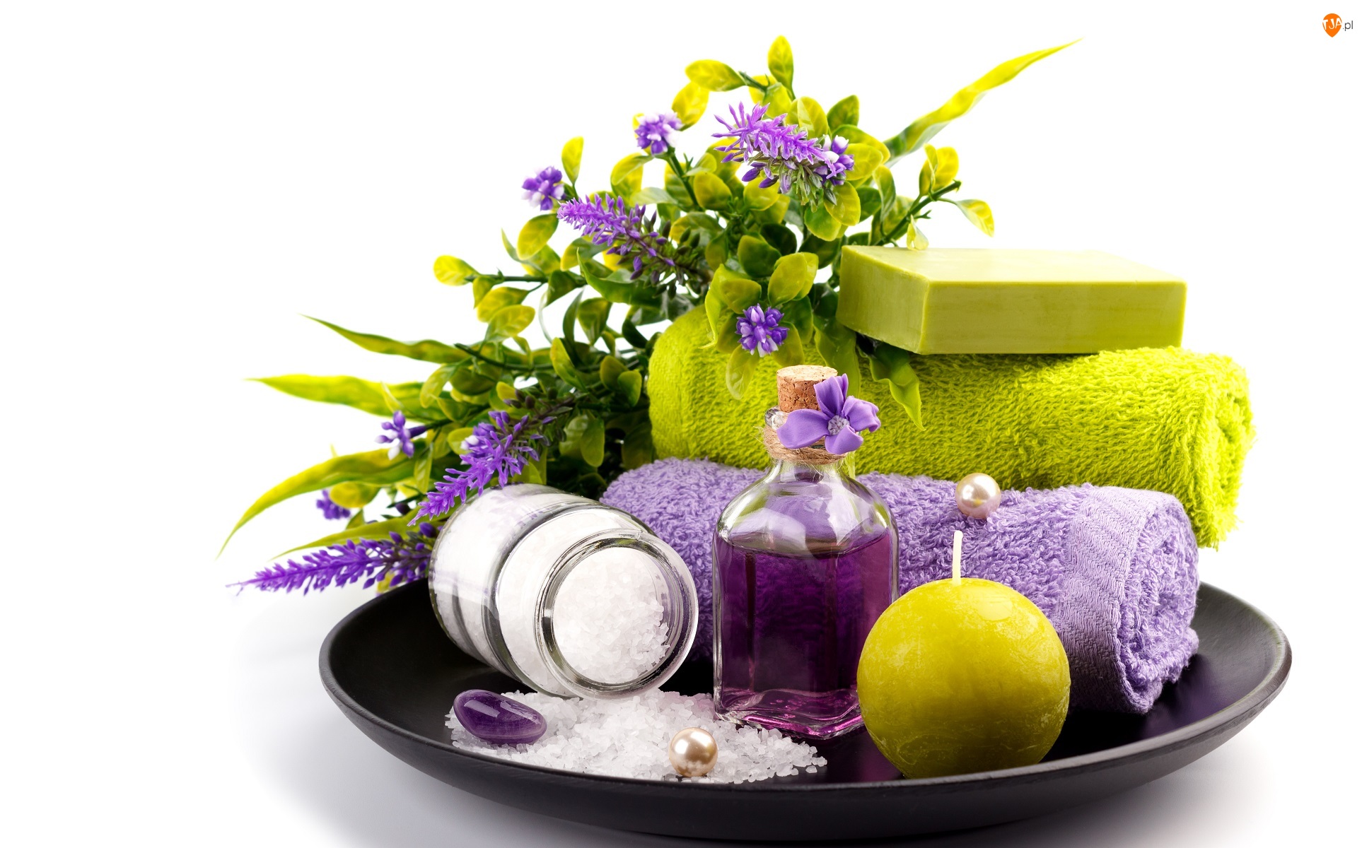 Świeca, Ręczniki, Olejek, SPA, Sól, Mydło, Kwiaty