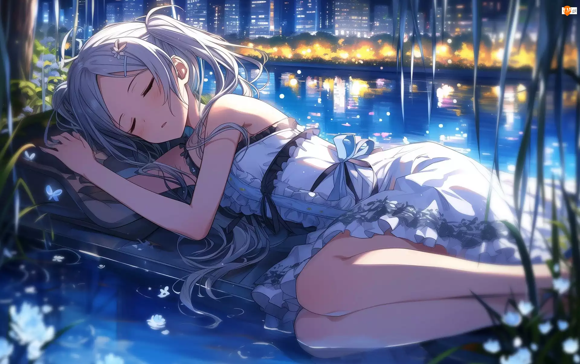 Anime, Dziewczyna, Śpiąca, Jezioro
