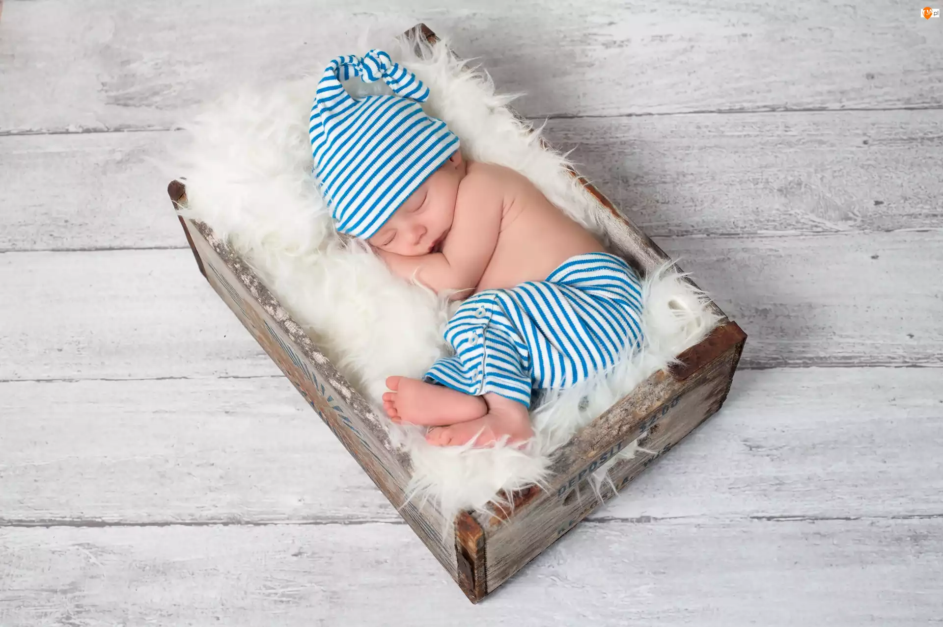 Dziecko, Niemowlę, Drewno, Śpiące, Skrzynka, Spodenki, Czapeczka