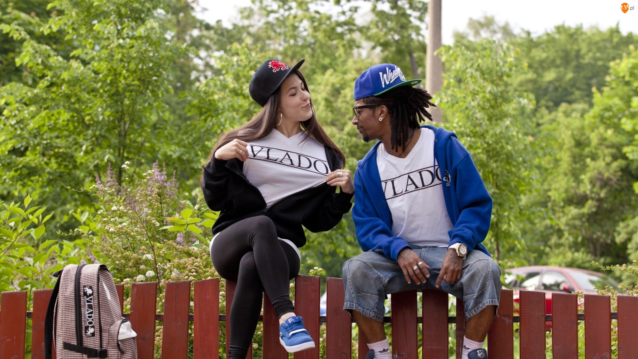 Sportowy, Strój, Kobieta, Drzewa, Para, Plecak, Mężczyzna, Płotek