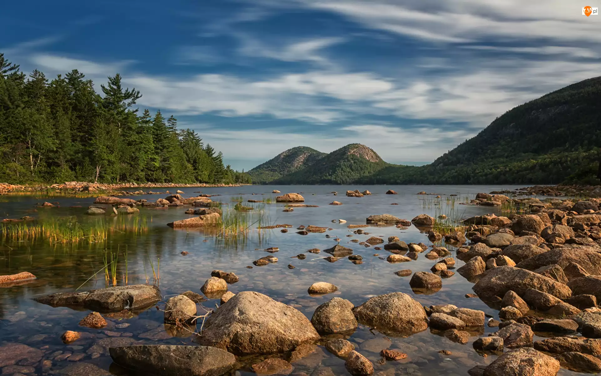 Stan Maine, Park Narodowy Acadia, Bubble Mountains, Stany Zjednoczone, Góry, Kamienie, Jezioro Jordan Pond