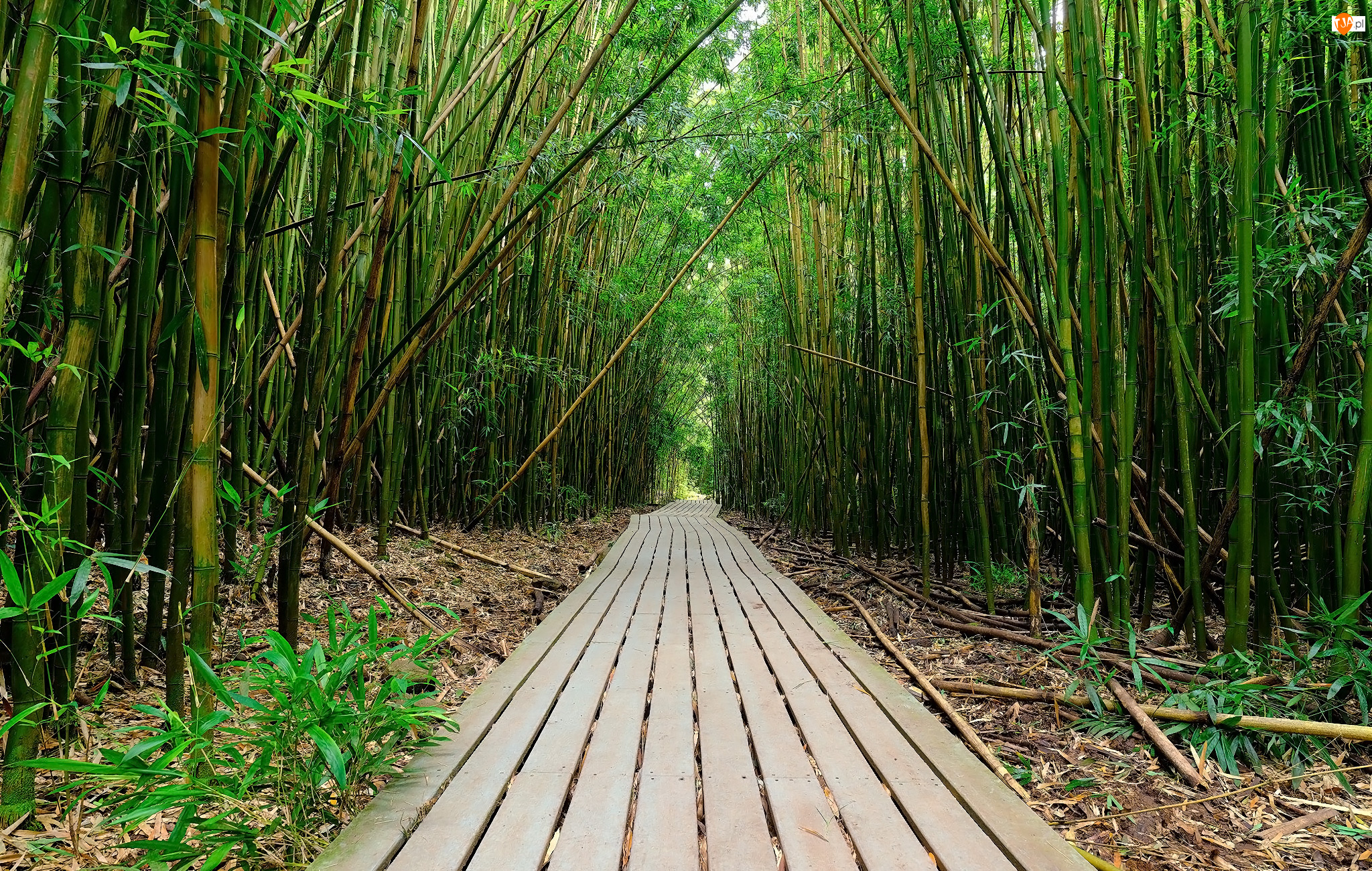 Stany Zjednoczone, Drzewa, Hawaje, Park Narodowy Haleakala, Maui, Bambusy, Droga, Las, Szlak Pipiwai