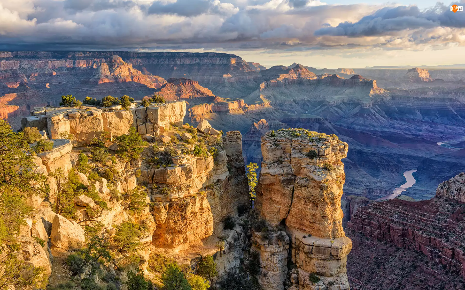 Stany Zjednoczone, Kanion, Arizona, Niebo, Chmury, Wielki Kanion Kolorado, Grand Caynon, Park Narodowy Wielkiego Kanionu, Skały
