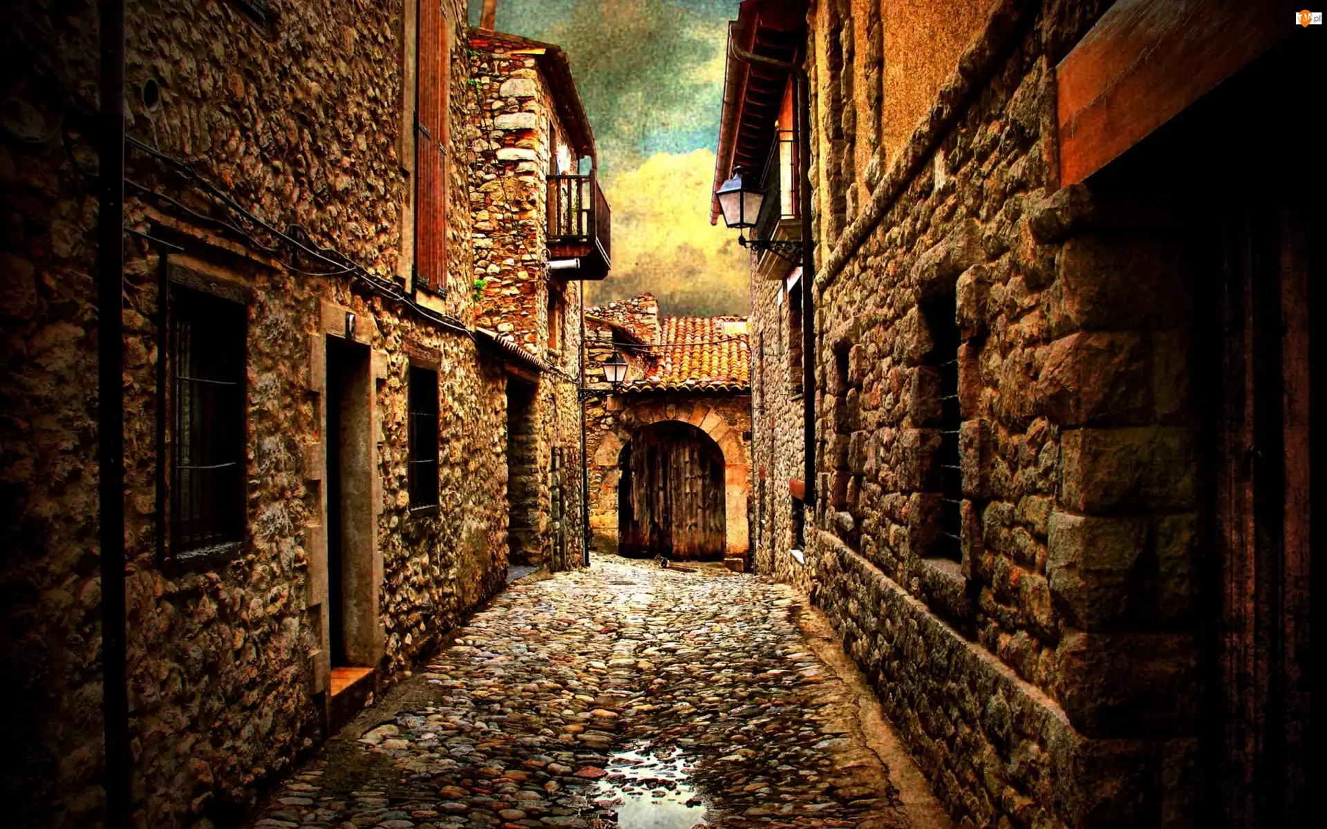 Stare, Hiszpania, Wąska, Ulica, Domy