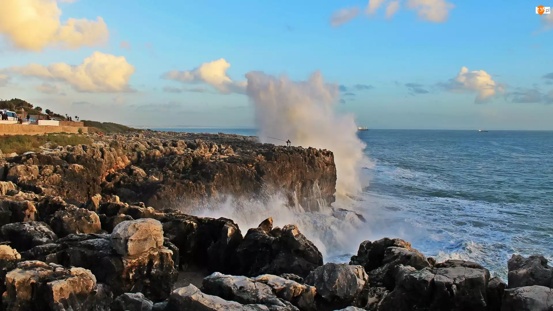 Statki, Wybrzeże, Wysokie, Skały, Fale