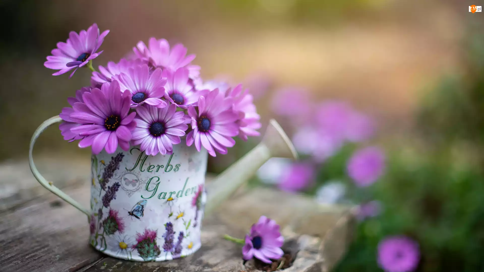 Stokrotki afrykańskie, Konewka, Różowe, Kwiaty