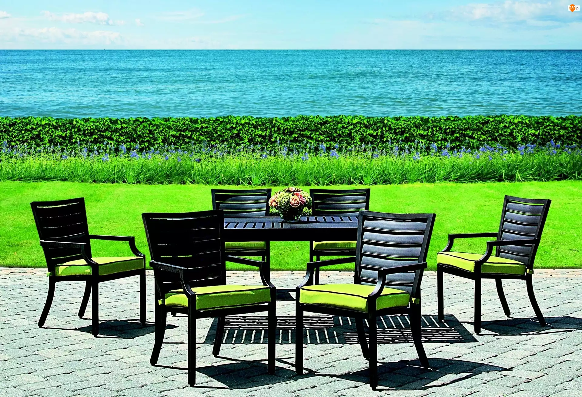 Stół, Trawa, Krzesła, Morze