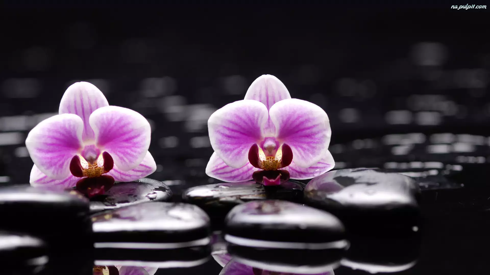 Storczyk, Kamienie, Kwiaty, Dwa, Orchidea