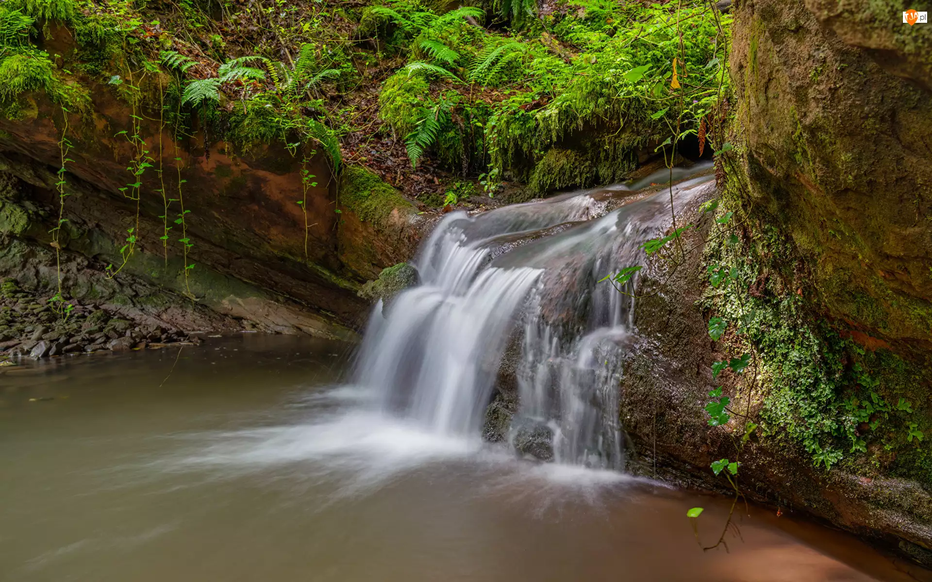 Strumień, Roślinność, Skały, Omszałe, Paprocie