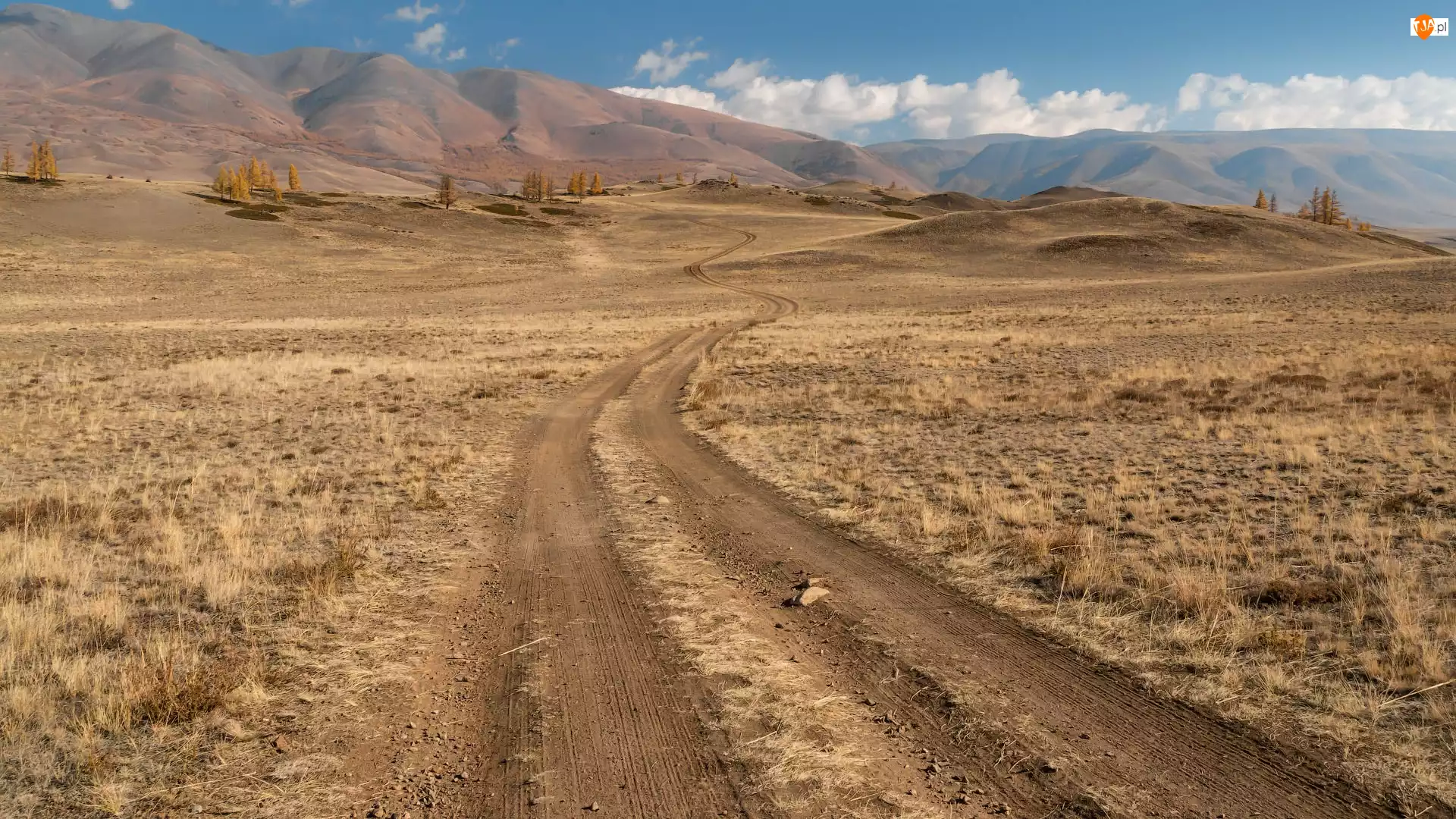Góry, Wzgórza, Trawa, Jesień, Sucha, Drzewa, Droga