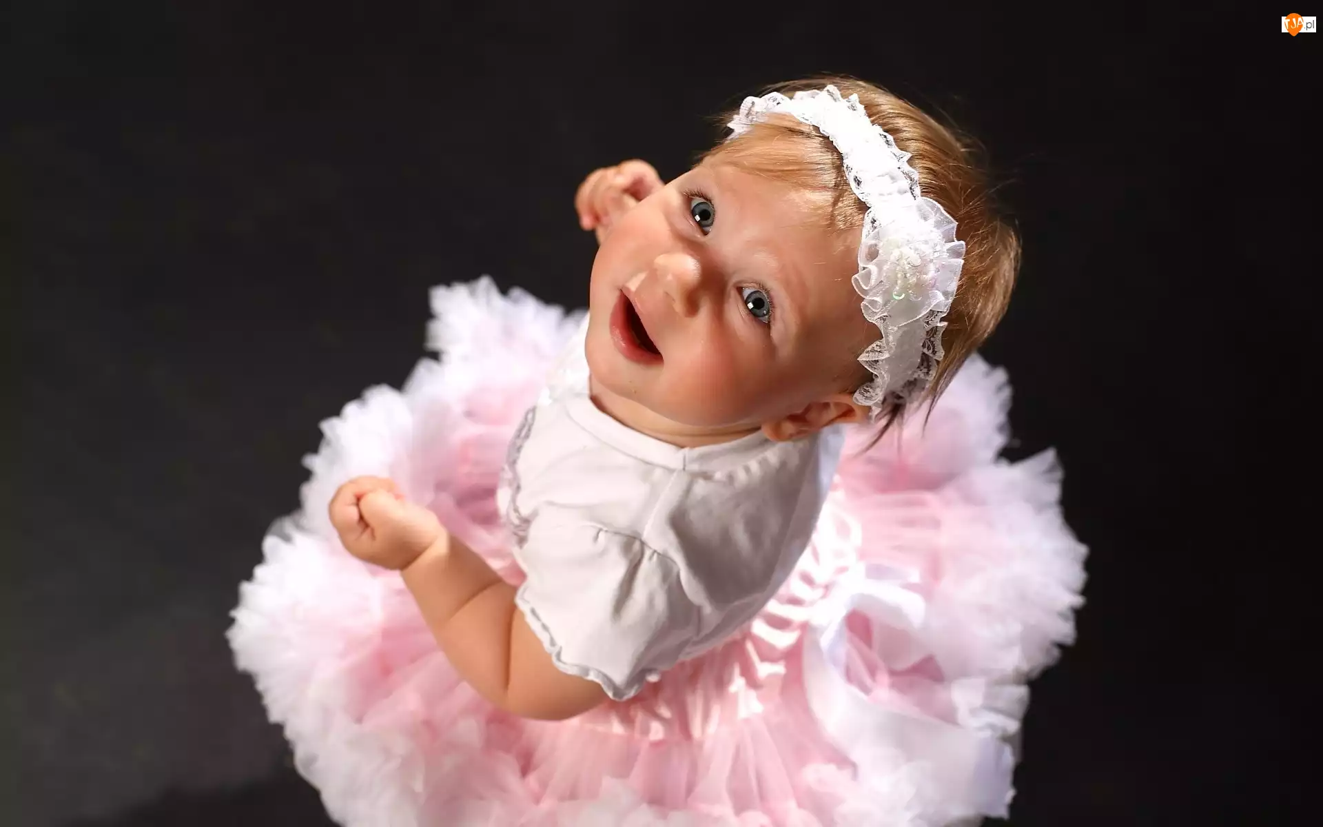 Sukieneczka, Uśmiechnięta, Opaska, Dziewczynka, Różowa