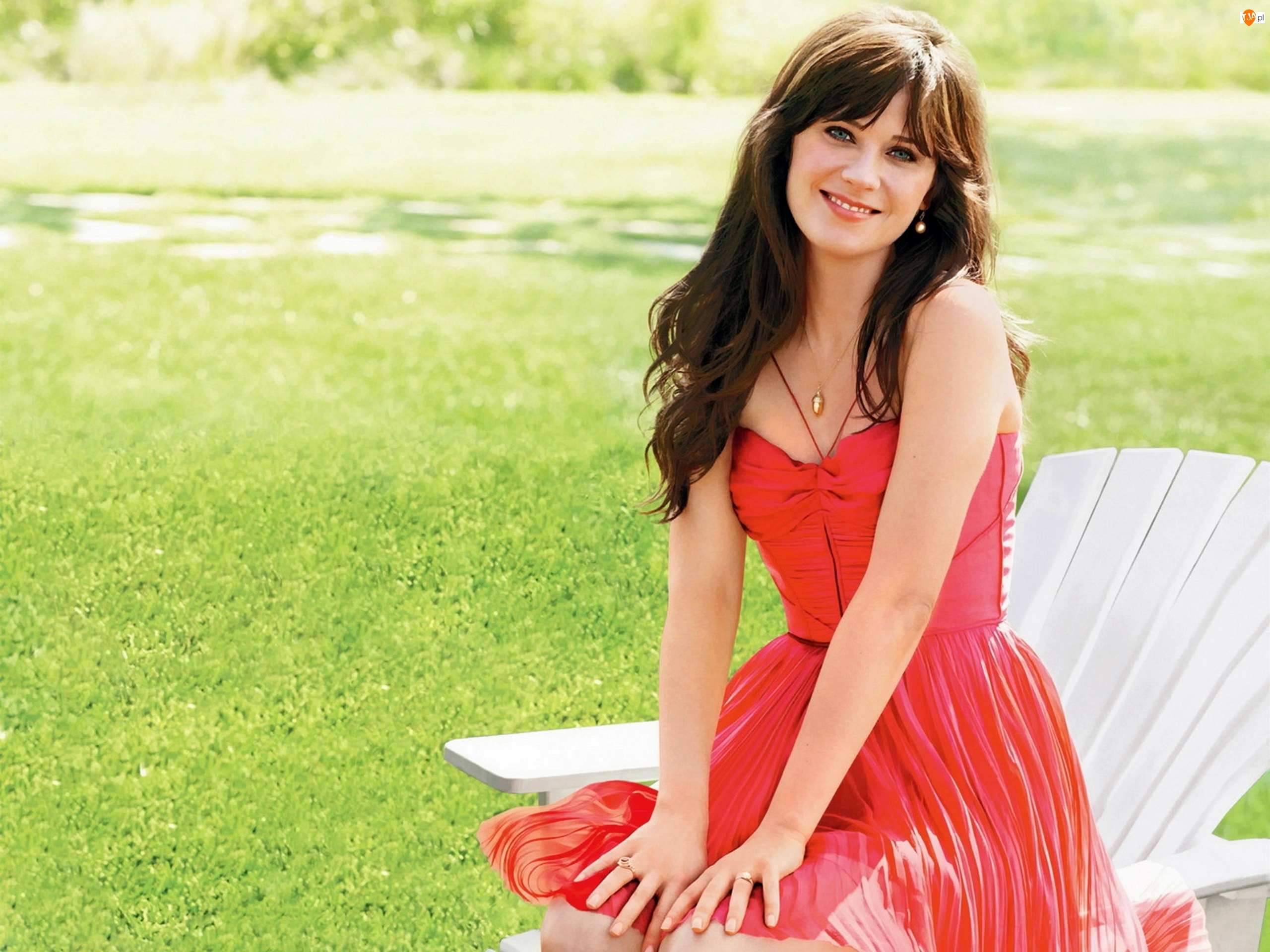 Sukienka, Aktorka, Deschanel, Zooey, Czerwona
