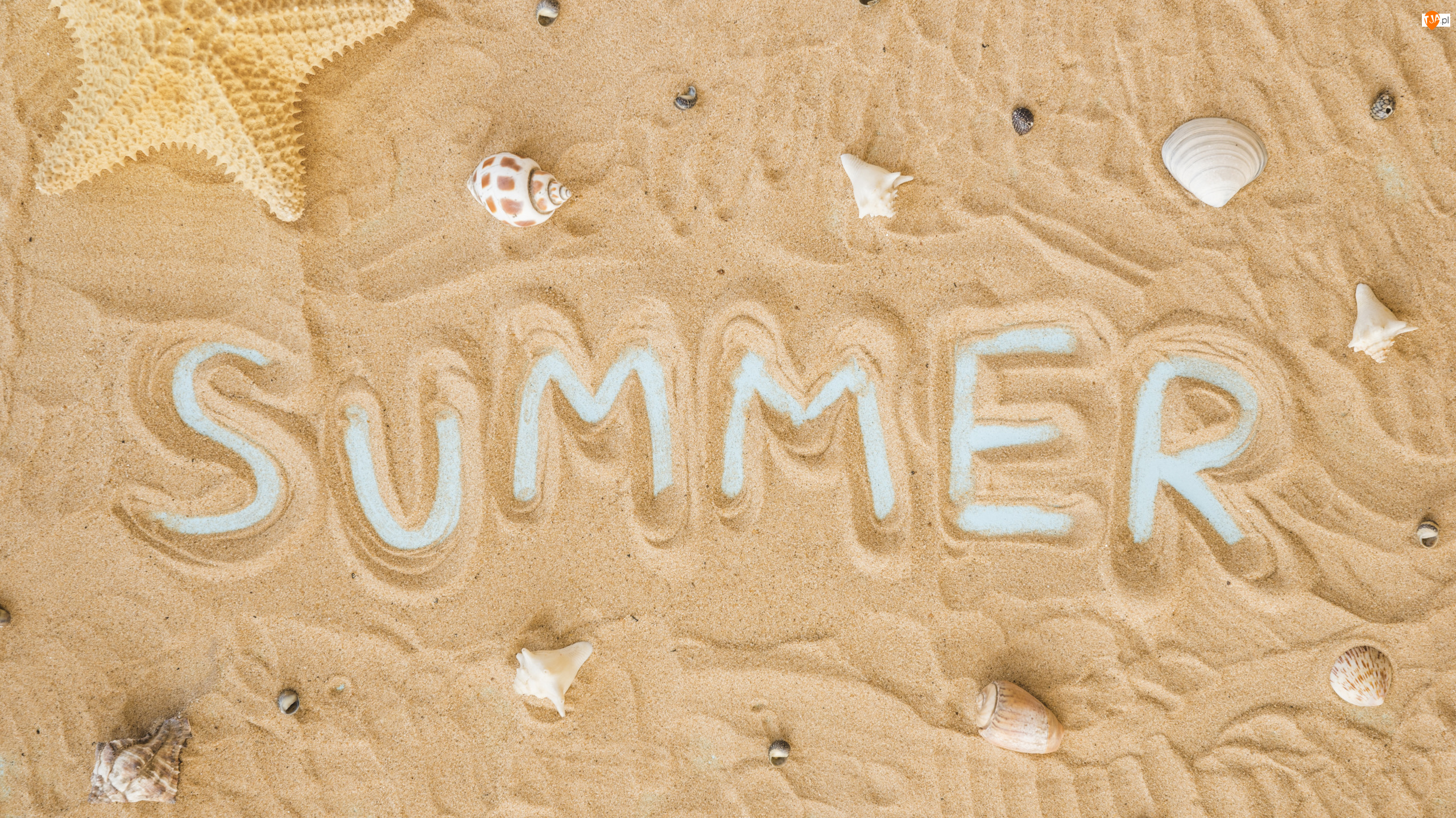 Lato, Piasek, Muszelki, Plaża, Summer, Napis, Wakacje
