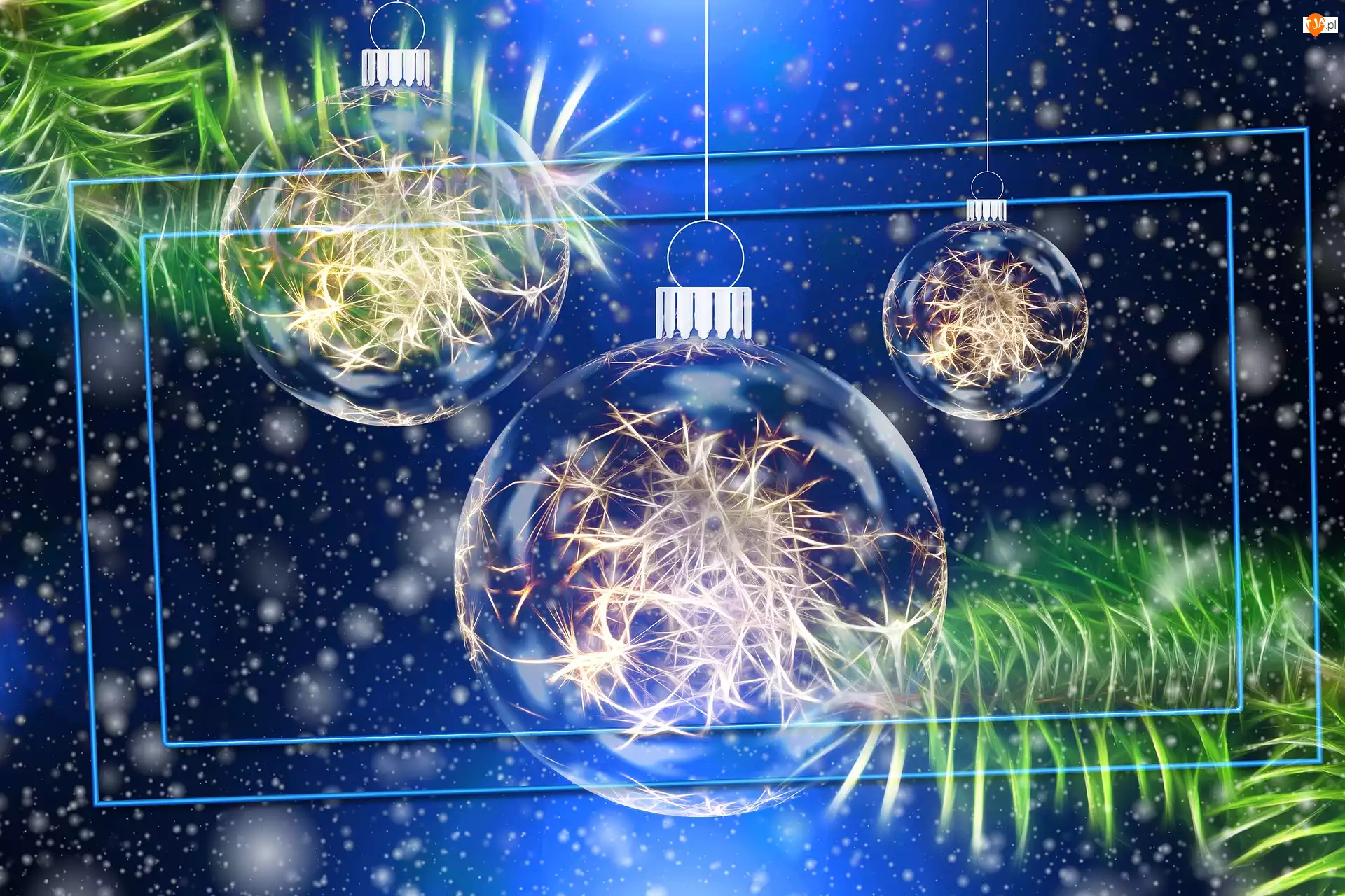 Bombki, Boże Narodzenie, Zielone, Fractalius, Gałązki, Ramka
