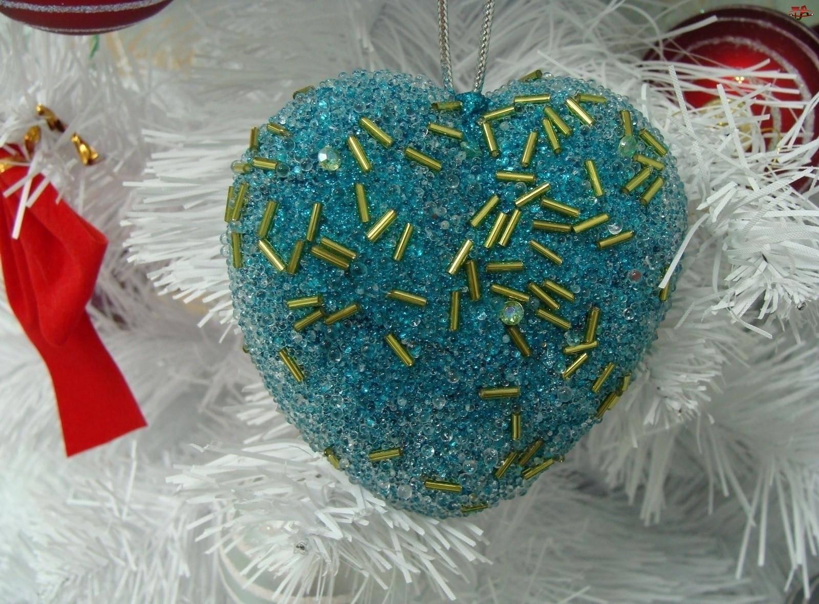 Świąteczne, Biała, Serce, Choinka, Ozdoby