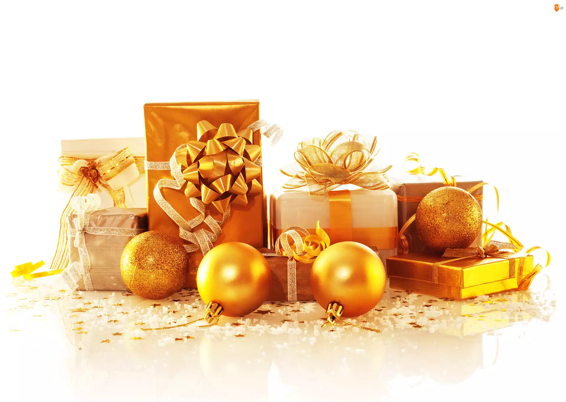 Białe tło, Świąteczne, Prezenty, Bombki