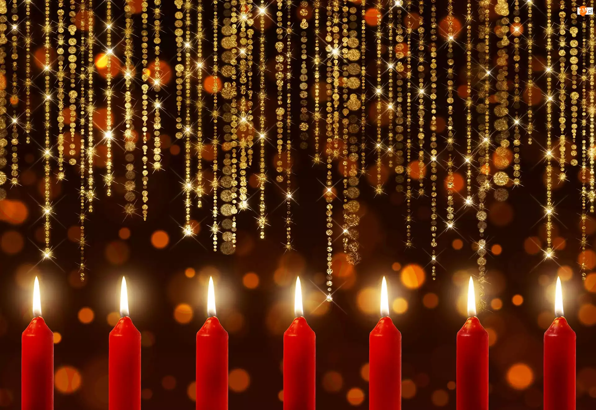 Wiszące, Koraliki, Świece, Czerwone, Kryształki