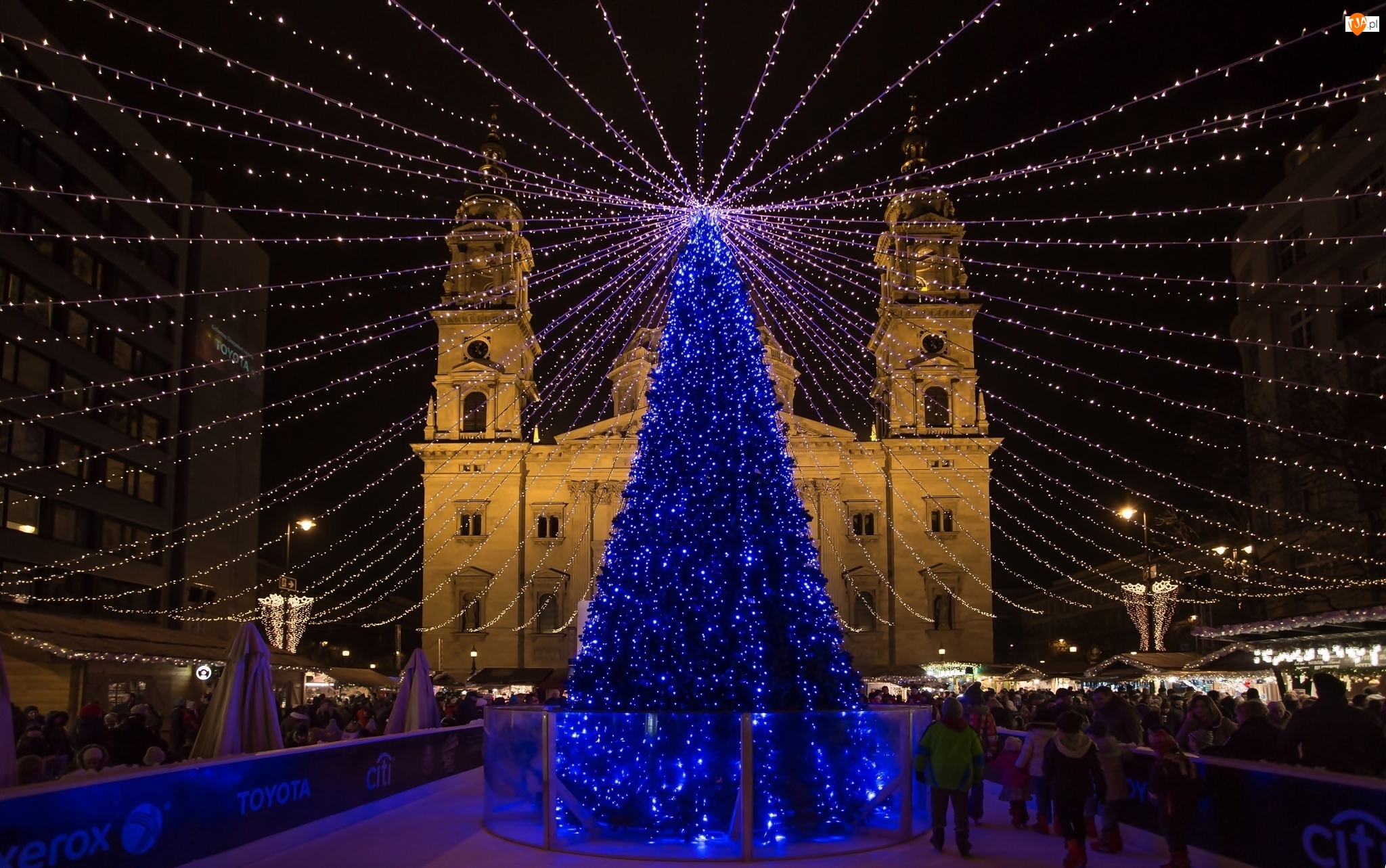Świątecznie, Choinka, Ludzie, Ulica, Budapest