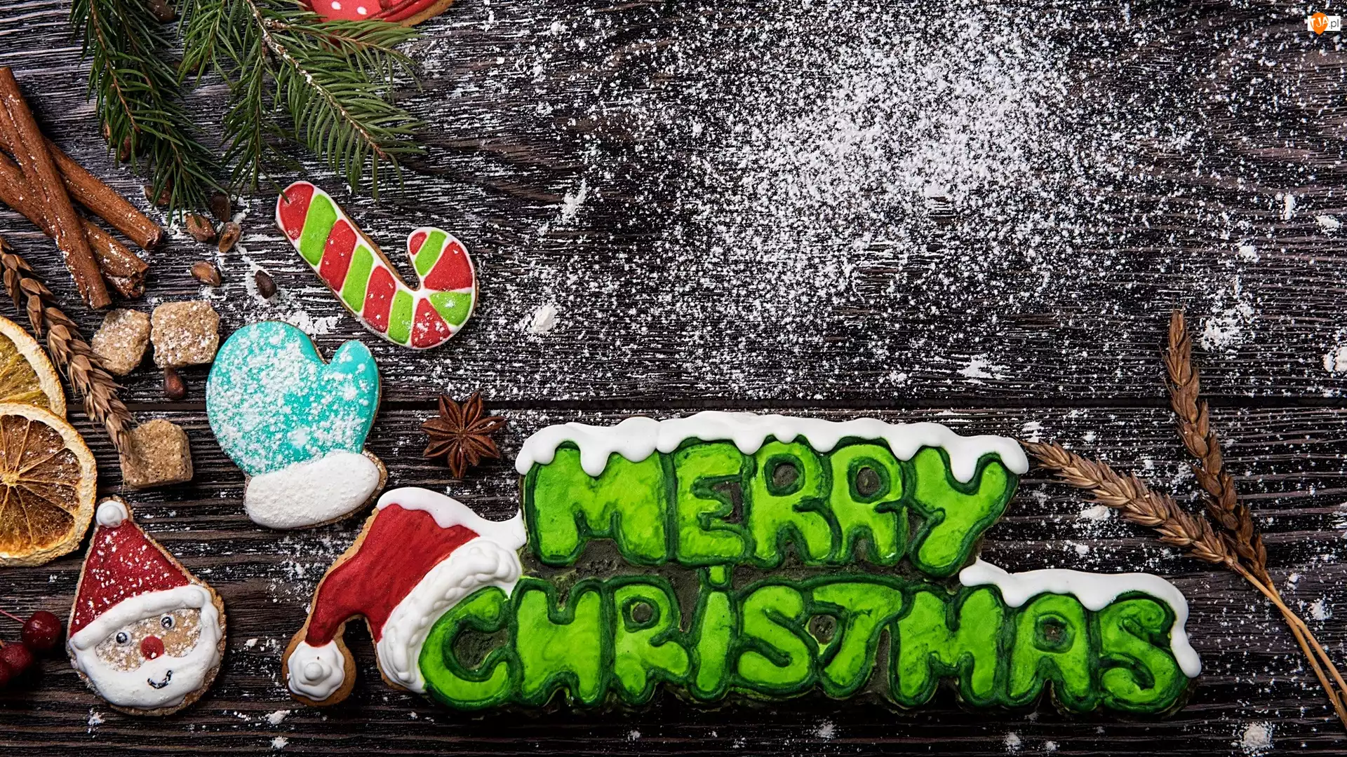 Pierniczki, Kompozycja, Napis, Boże Narodzenie, Merry Christmas