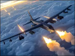Światła, Samolot, Wojskowy, Chmury