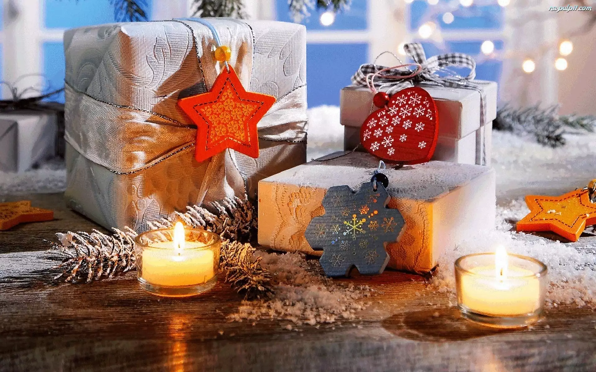 Świece, Gwiazdki, Gałązki, Prezenty