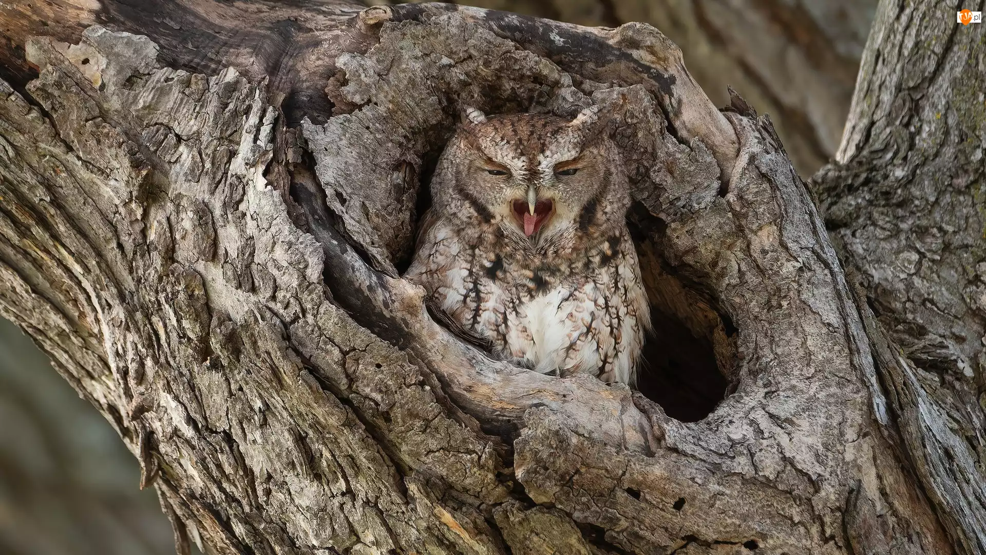 Syczoń krzykliwy, Dziupla, Sowa, Ptak, Drzewo