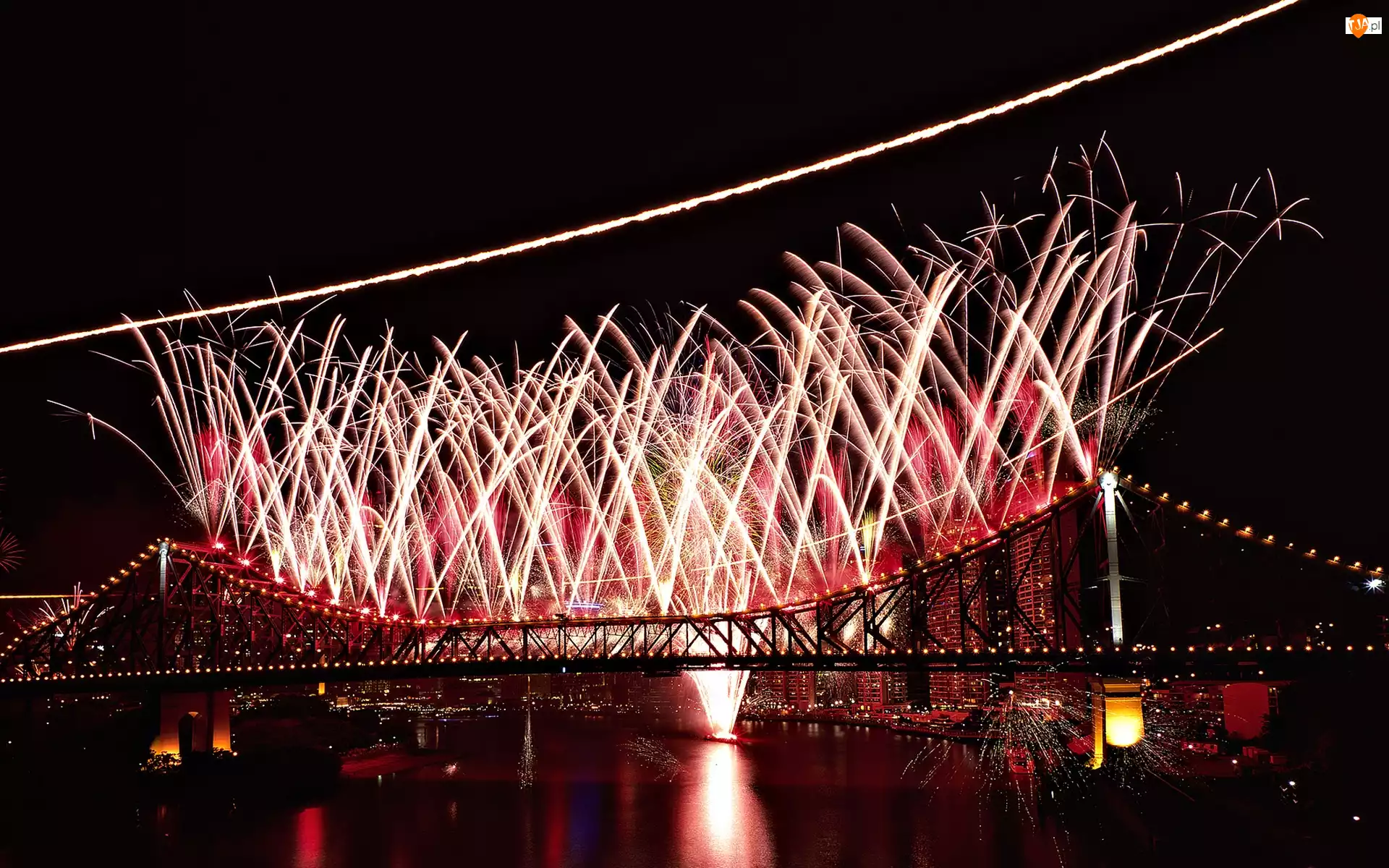 Fajerwerki, Sylwester, Rzeka, Most