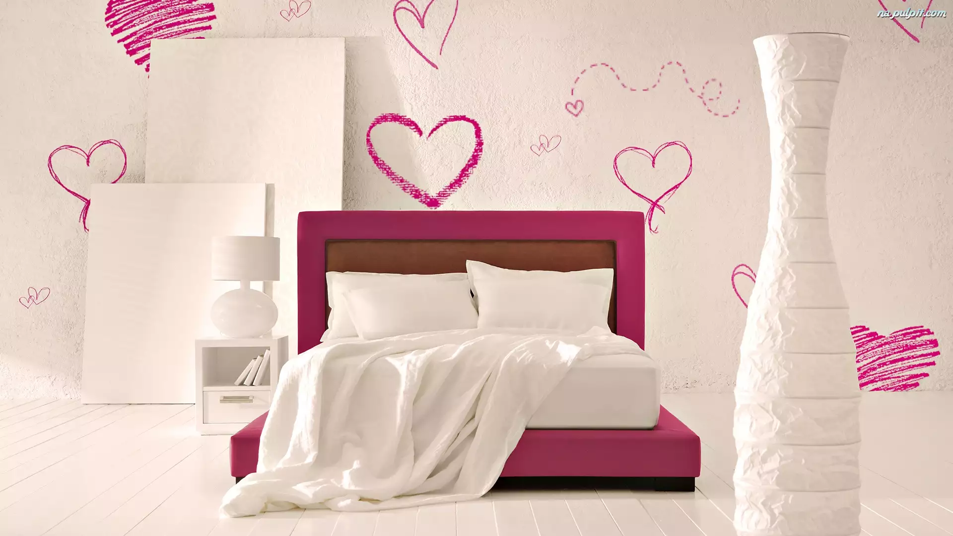 Sypialnia, Pościel, Łóżko, Serca