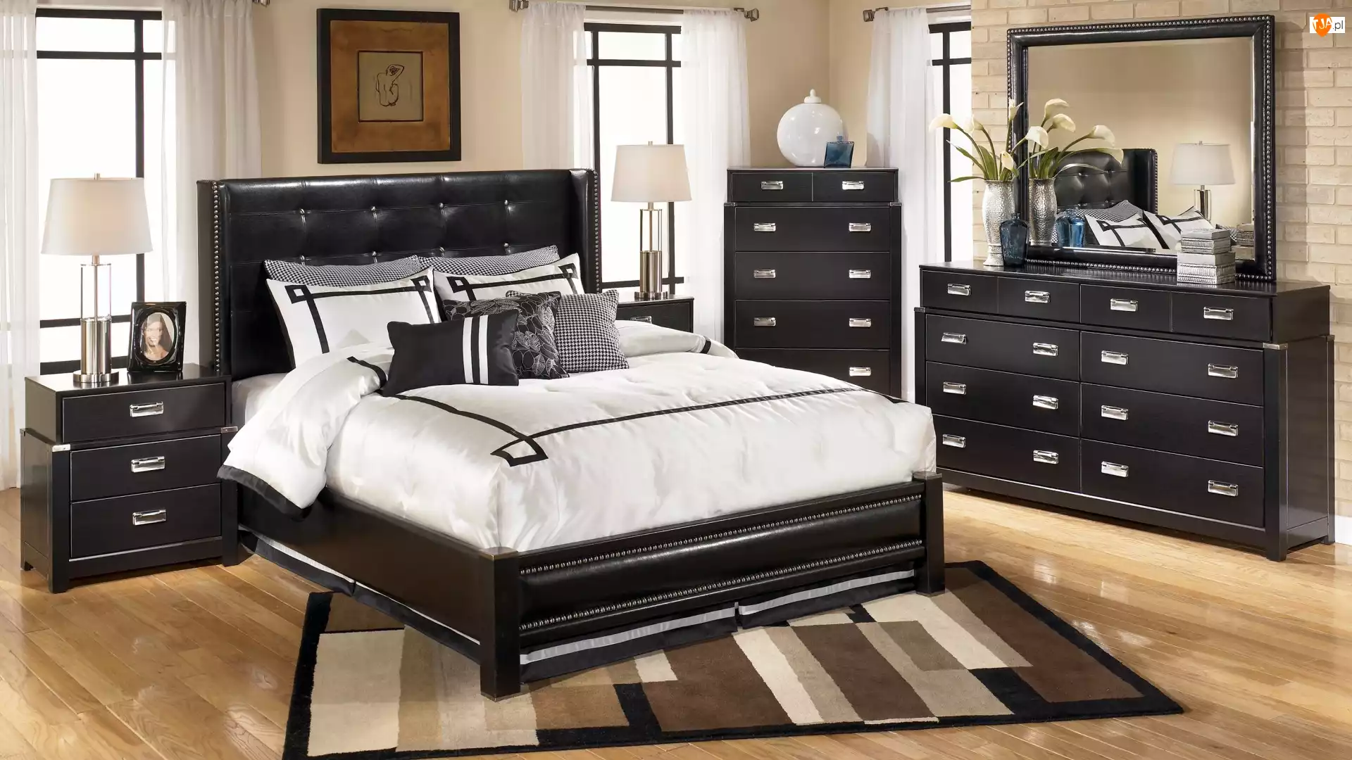 Czarne, Sypialnia, Komody, Lustro, Meble, Szafki