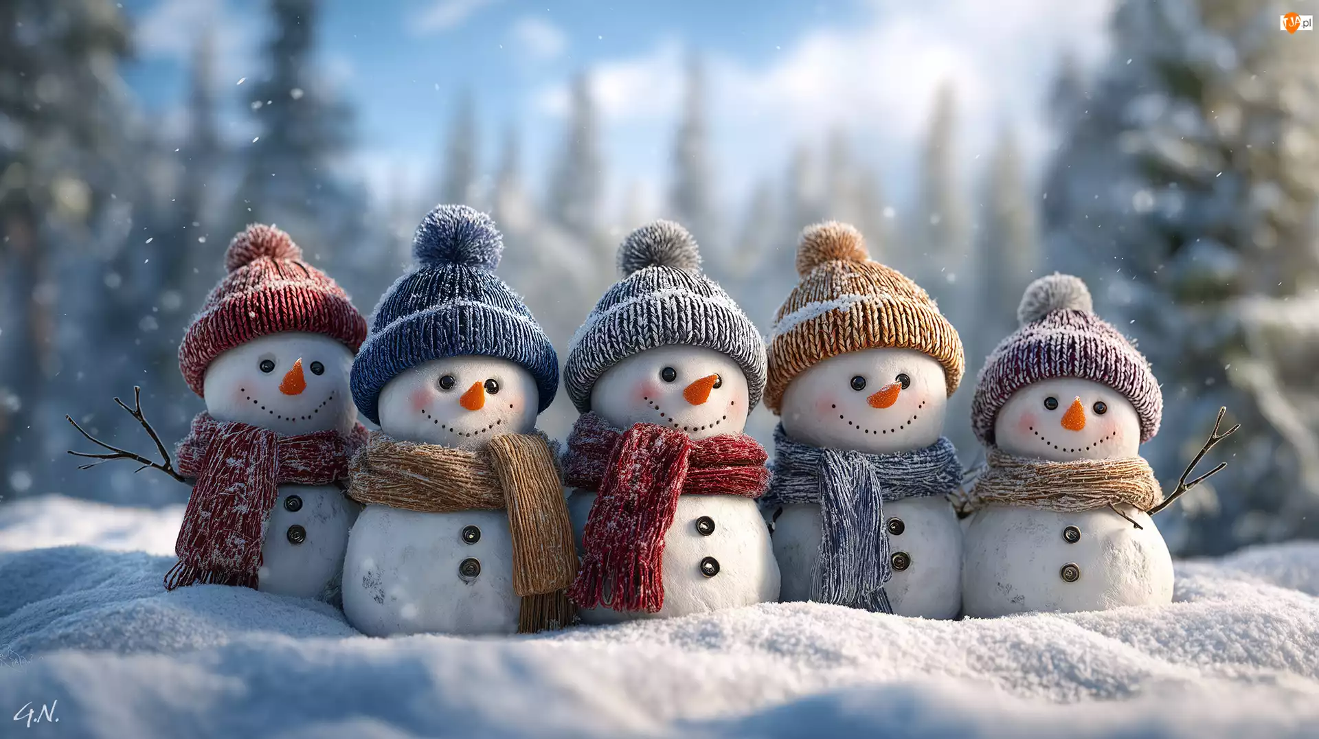 Szaliki, Grafika AI, Czapki, Bałwany, Zima