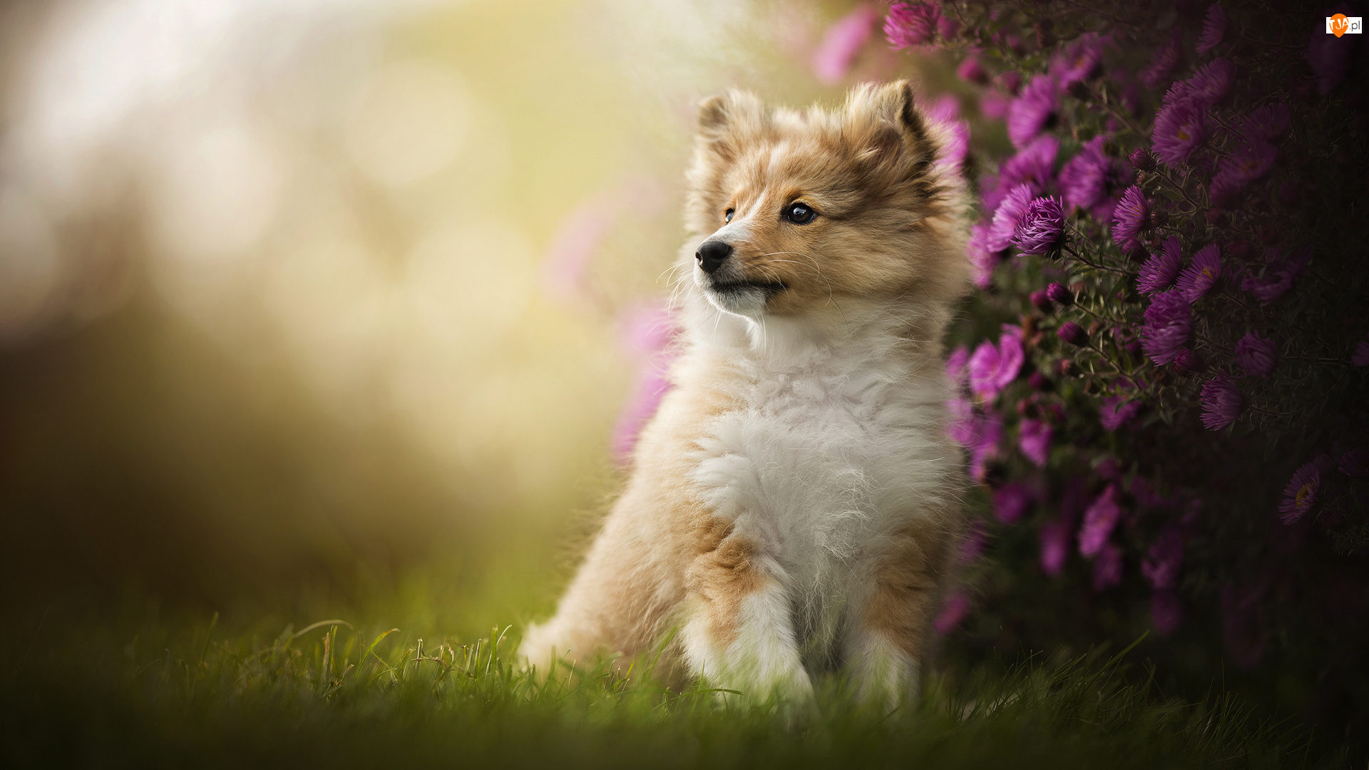 Astry, Owczarek szetlandzki, Szczeniak, Kwiaty