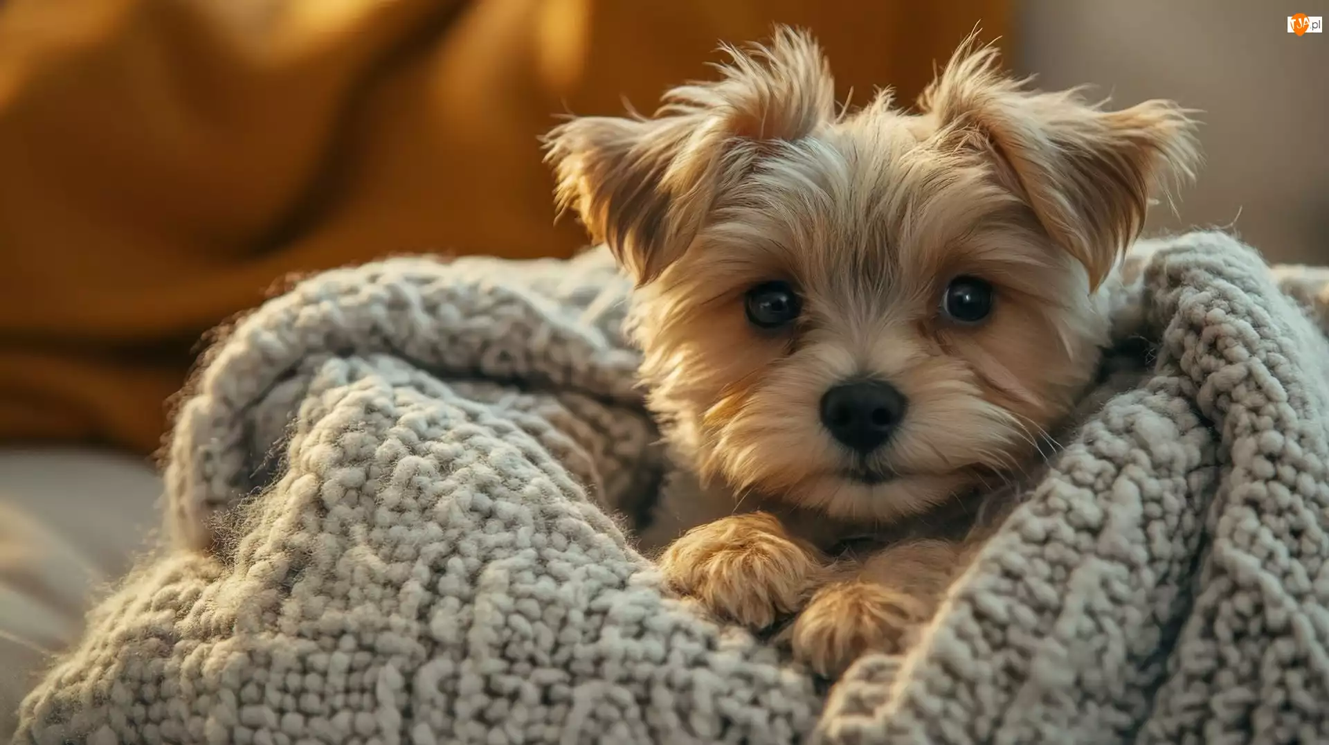 Szczeniak, Koc, Rudo-biały, Pies, Biały