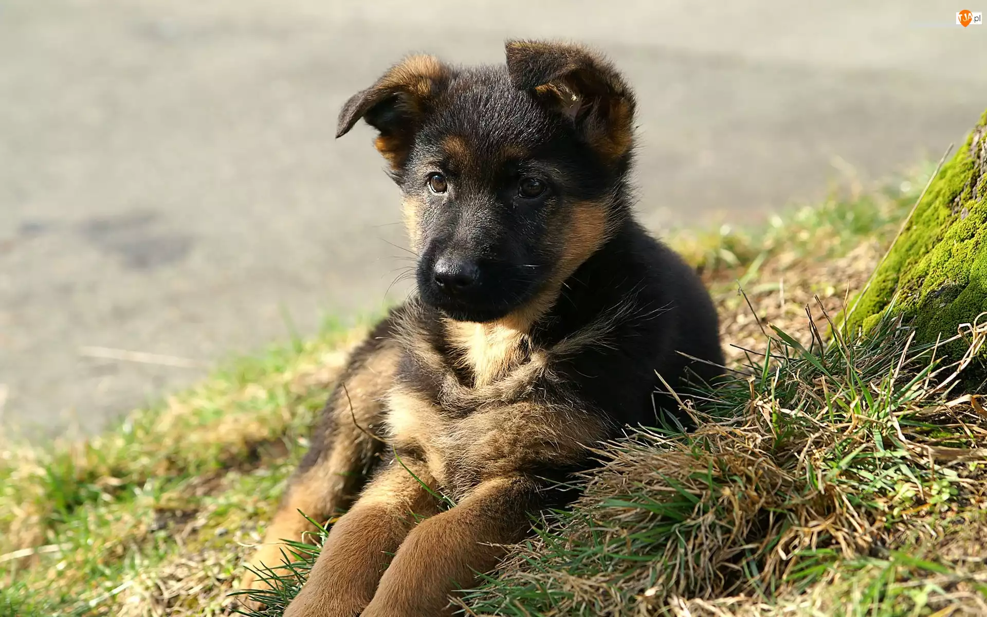 Szczeniak, Trawa, Owczarek, Niemiecki