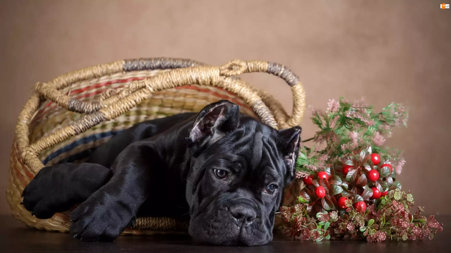 Cane Corso, Koszyk, Pies, Czarny, Szczeniak